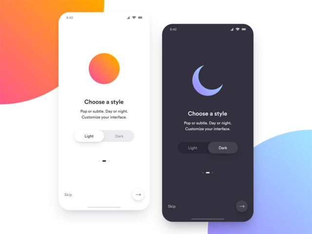 去訪問上面光明/黑暗模式切換的例子。開關的滑動和做的正是你所期望的,沒有太多的大驚小怪。它有一個簡單的動畫,解釋了如果你按下開關將會發(fā)生什么。這是固體的微觀相互作用。