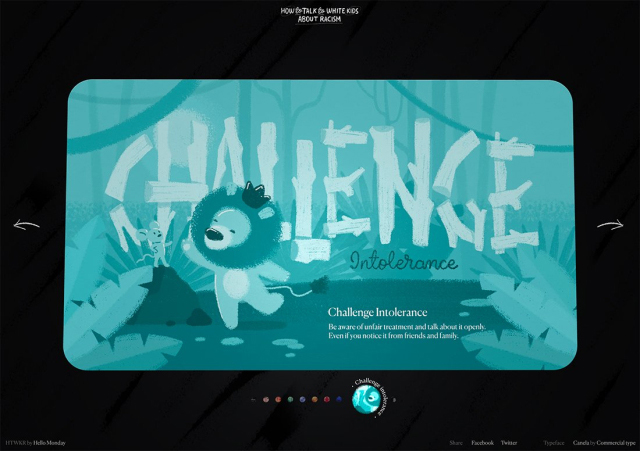 上面的“如何與白人孩子談論種族主義”的timeline微交互很簡單,并且完全與設計的其余部分整合在一起。他們包含了一定程度的細節(jié),使移動通過這本書的數(shù)字版本令人愉快。